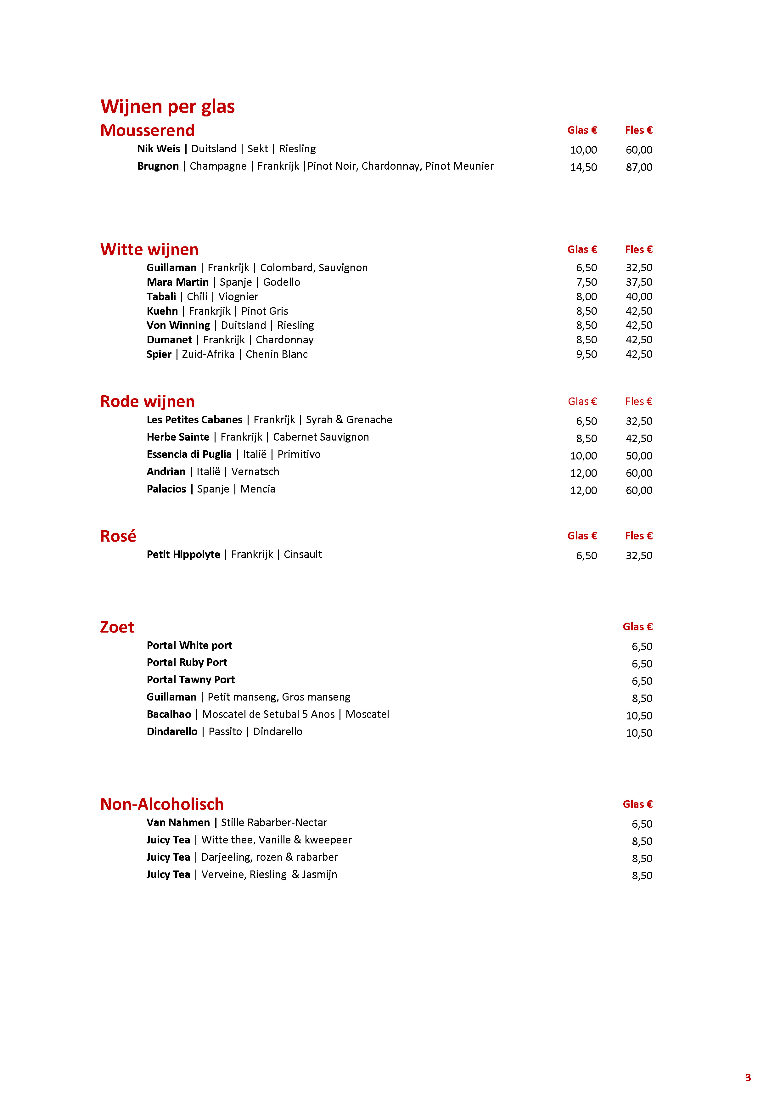 Wijnen per glas
